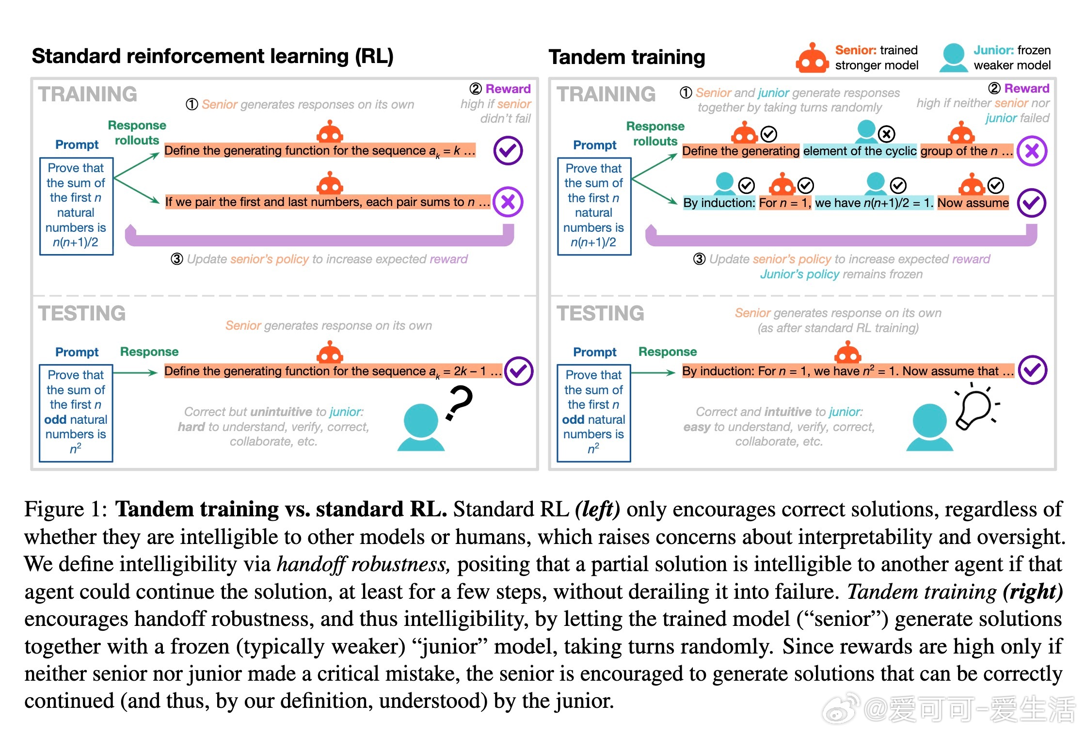 提出了一种新颖的强化学习训练范式——串联训练(tandem training),旨在提升大语言模型的可理解性与协作能力。