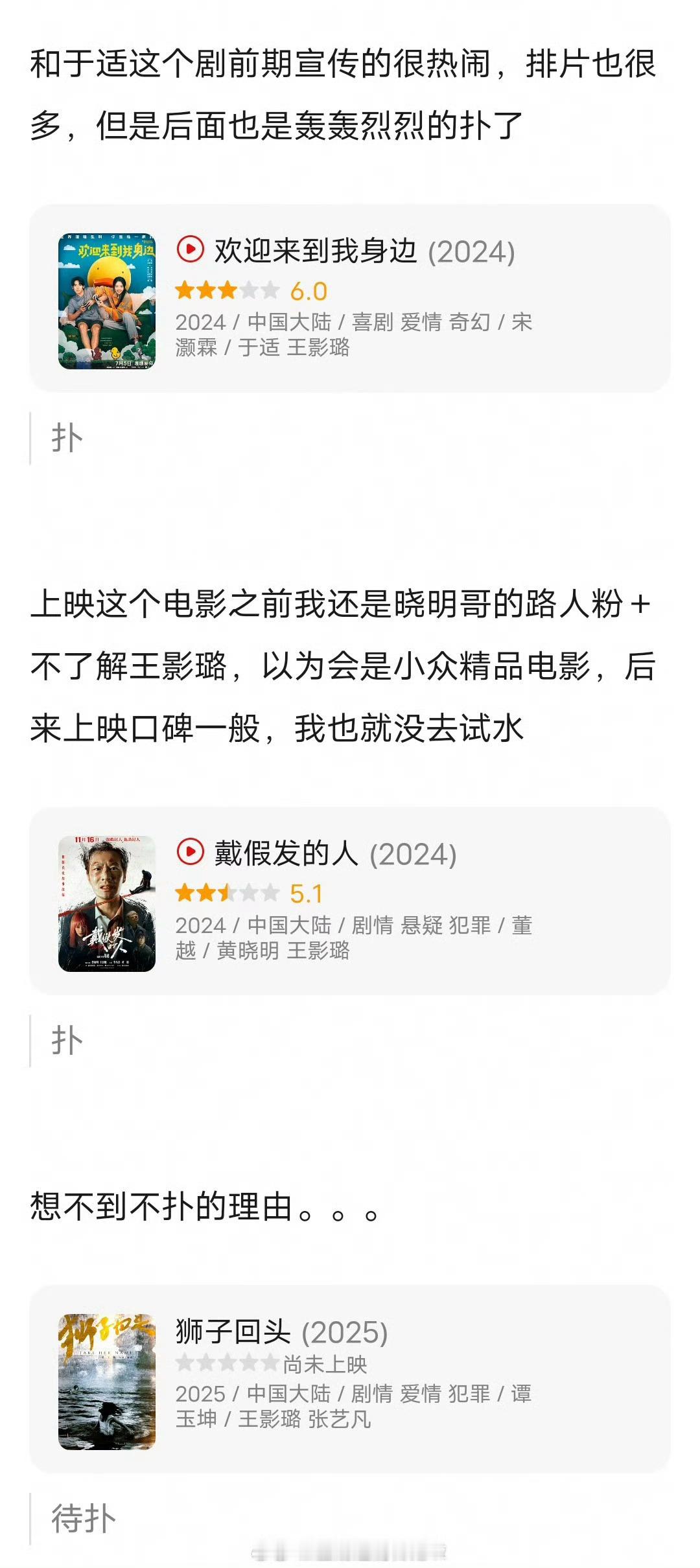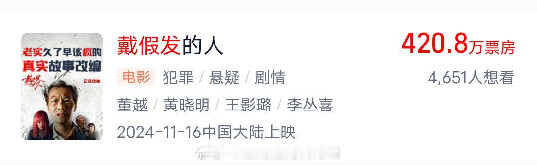 电影方面也不行,流量和影帝轮着来,和于适的《欢迎来到我身边》4555万,和黄晓明的《戴假发的人》只有420万。