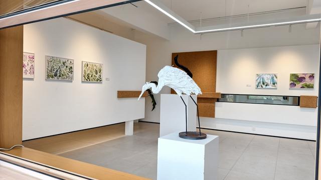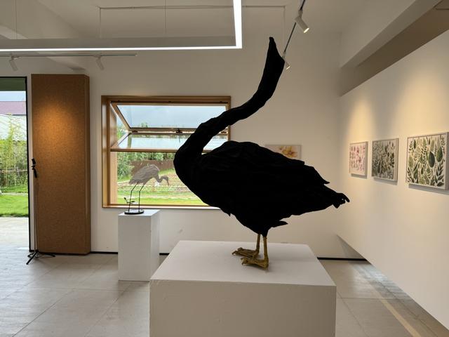 “农家乐:菜园美术馆开馆展”位于沈杨村901欢乐农场,展出艺术家于翔、周莉、欧阳婧依的作品。于翔的纸质雕塑《农家乐》以白鹭、鹅为原型,将自然形象重构为轻盈的视觉语言;欧阳婧依的平板绘画《八蔬菜图》以数字媒介呈现八种农作物的生动形态;周莉的《大自然植物保护图谱》则结合生态研究与艺术表达,构建出一部“社区植物手册”。三位艺术家的创作从在地环境出发,呼应“艺术回归土地”的核心理念。