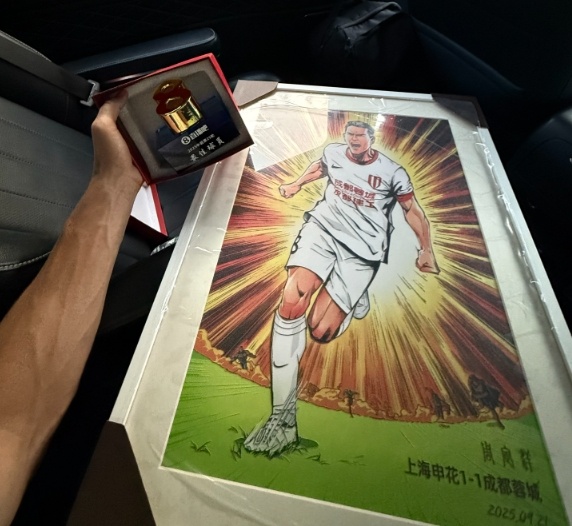 成都蓉城队长周定洋当选直播吧中超第25轮最佳,小吧本次颁奖特地制作了他喜欢的漫画人物海报,作为礼物送给他。