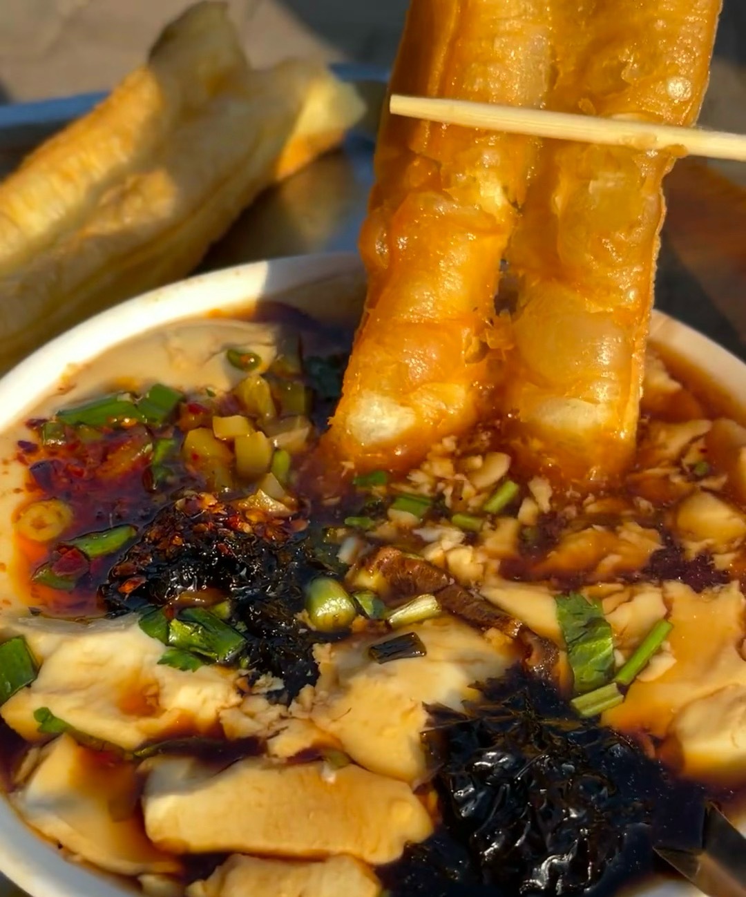 幂姐这个豆腐脑看起来像是北方不加辣椒的卤汁豆腐脑,但是应该是光线问题 所以拍出来像黑色的🤣你们喜欢甜豆腐脑还是咸豆腐脑呀