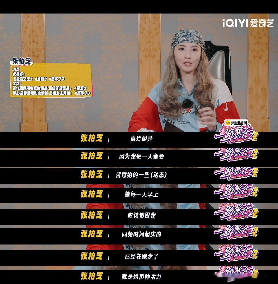 张柏芝每天留意刘嘉玲的动态 美女间的默契!张柏芝在《一路繁花2》透露每天关注刘嘉玲动态,作息同步,刘嘉玲赞她天生吃演员饭,这种惺惺相惜的互动太让人期待。