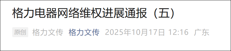 近日,法院已作出判决〔案号:(2025)粤0491民初601号〕:该MCN公司需公开发布道歉声明并置顶30日,同时赔偿格力电器经济损失人民币16万元。目前,我司已收到对方的道歉及赔偿款项。