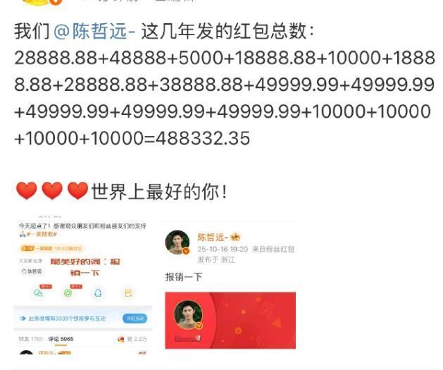 陈哲远这几年发了48万红包! 《一笑随歌》收官,陈哲远又发红包了,有网友总结了他