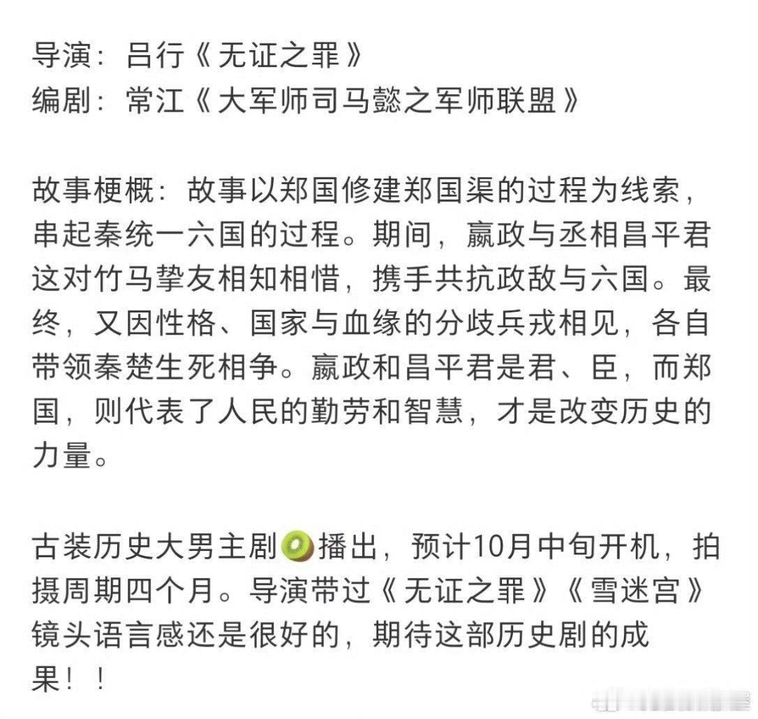 《秦谜》开机,古装历史大男主剧,以修建郑国渠为故事背景,那大男主肯定是嬴政吧[震惊]