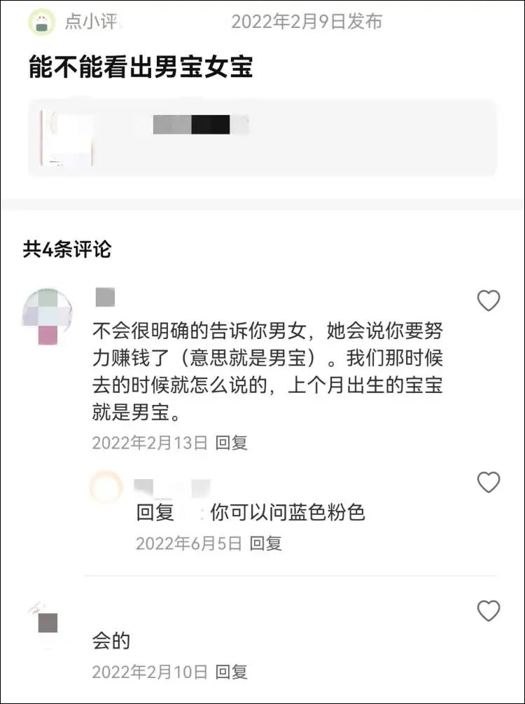 “宝宝不配合,当天拍了好几次”“拍了很多照片和视频,最后的相框是蓝色的,懂的。”“结束之后会给你相应颜色的相框。”“除非看粉蓝,否则没啥必要去拍,太累了。”在某网站上,该孕婴摄影店的评论充斥着大量关于男女、粉蓝相框的讨论。