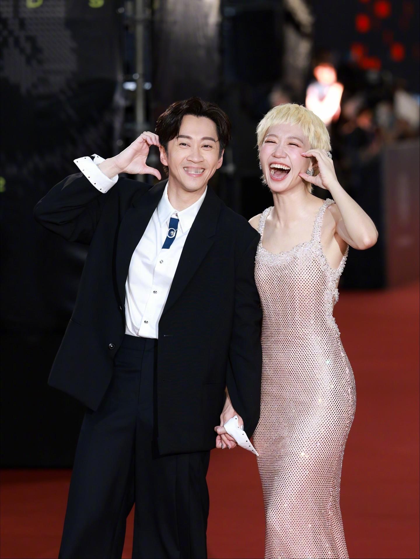 出席金钟奖 的新婚夫妇陈汉典与妻子-本届金钟奖典礼主持 Lulu 黄路梓茵。Lu
