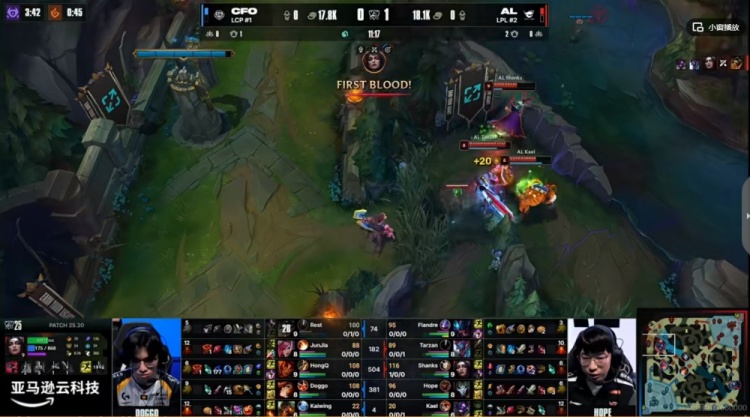 [15:40]先锋团,kael牛头开团队友跟不上自己白给,CFO回头拿下峡谷先锋!不过回头CFO中野贪线,结果被AL三人直接逮捕!这波0换2之后AL还拿下了战斗先机!