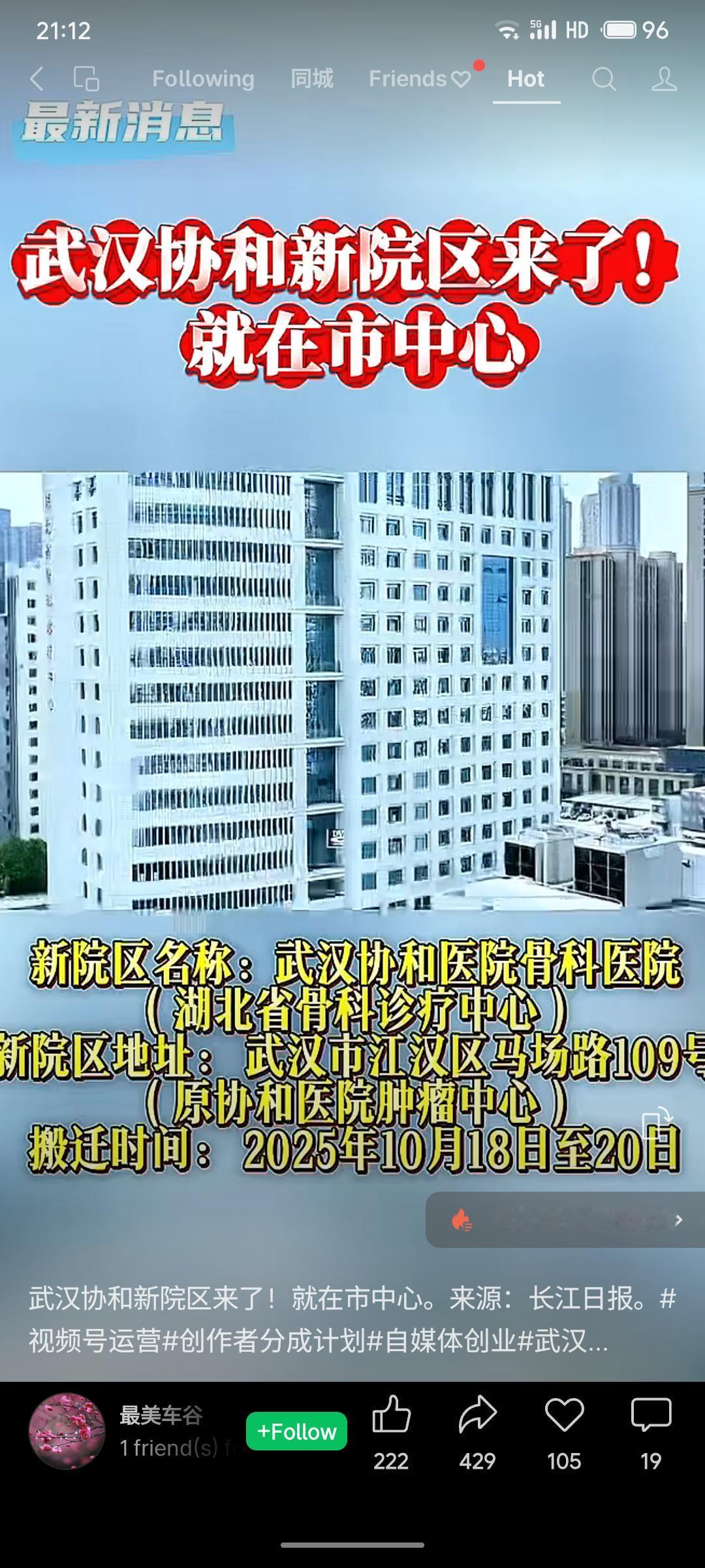 武汉协和医院骨科医院(湖北省骨科诊疗中心)新院区正式启用,位于江汉区马场路109号。骨科、手外科与康复医学科住院部将于2025年10月18日至20日搬迁至此,但相关门诊服务仍保留在主院区,就医时需注意区分。