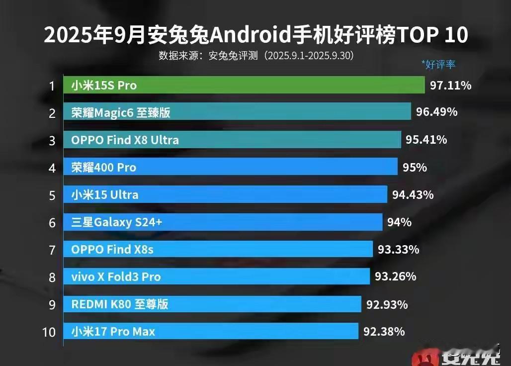 安兔兔这榜单可以[赞] 搭载玄机01的小米15Spro, 9月份好评榜第一, 因