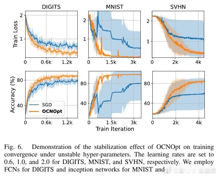实验结果显示,OCNOpt在多个公开数据集(如MNIST、CIFAR10、SVHN等)和多种网络架构上,均优于传统一阶优化器(SGD、Adam、RMSProp)及现有OCP启发方法,表现出更快的收敛速度、更强的鲁棒性和更高的测试准确率,同时计算资源需求可控。