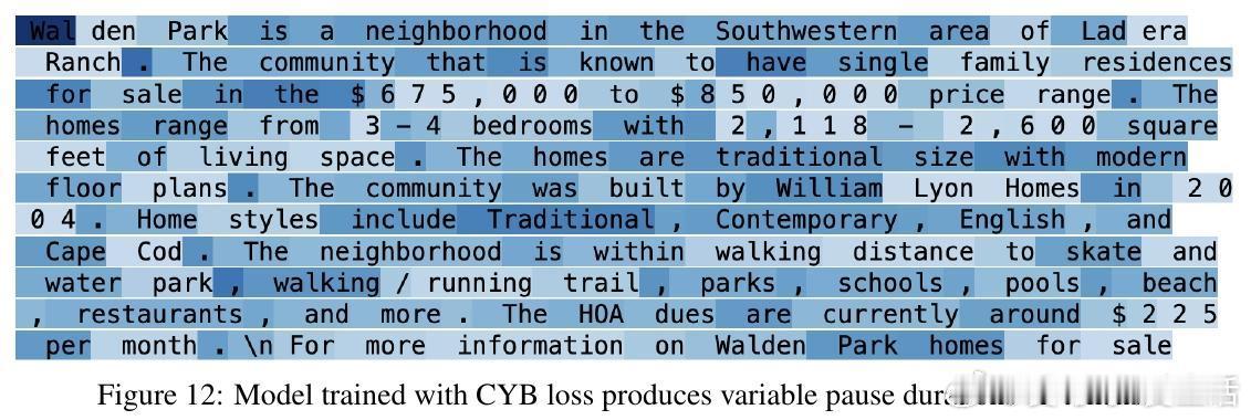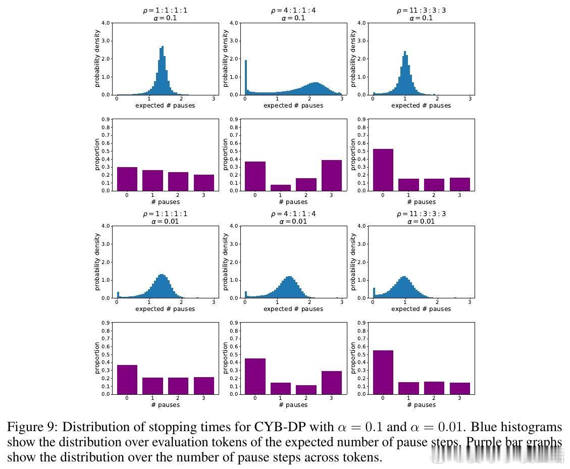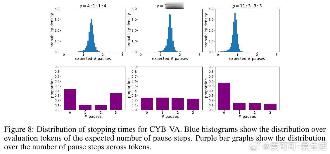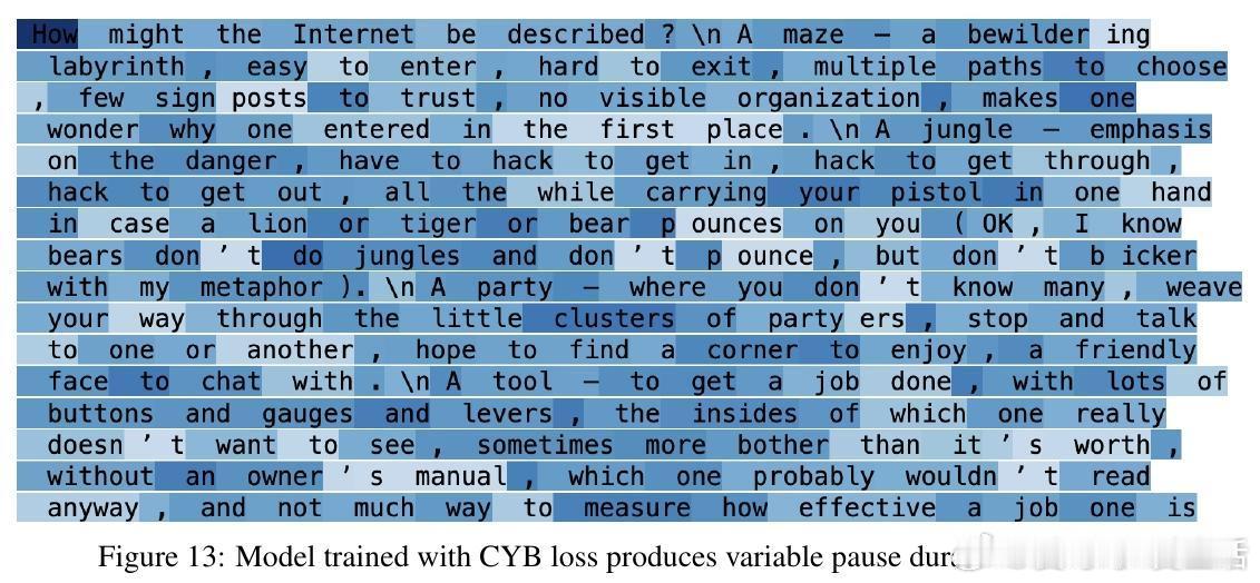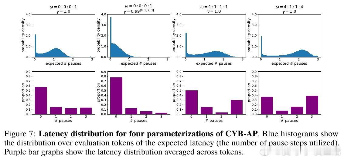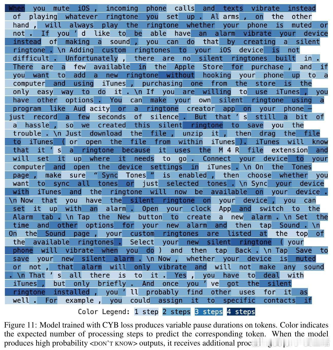 - 训练出的模型能针对不同Token的复杂度和上下文自适应调整计算步数,如对复数名词“patients”请求更多暂停,而对缩写“wasn”则快速响应。