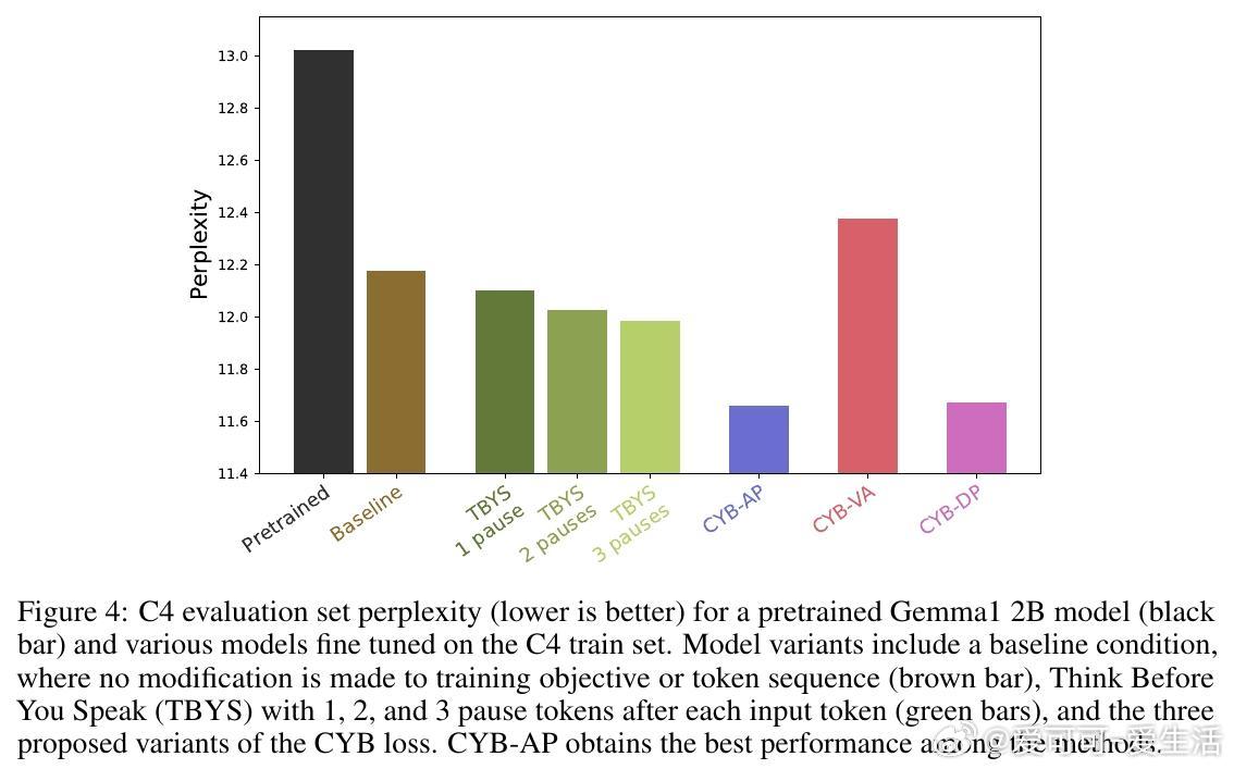 - 通过在C4数据集上微调实验,CYB-AP与CYB-DP明显优于传统交叉熵损失及已有“Think Before You Speak”方法。