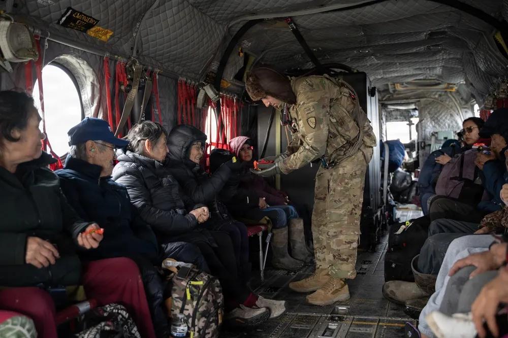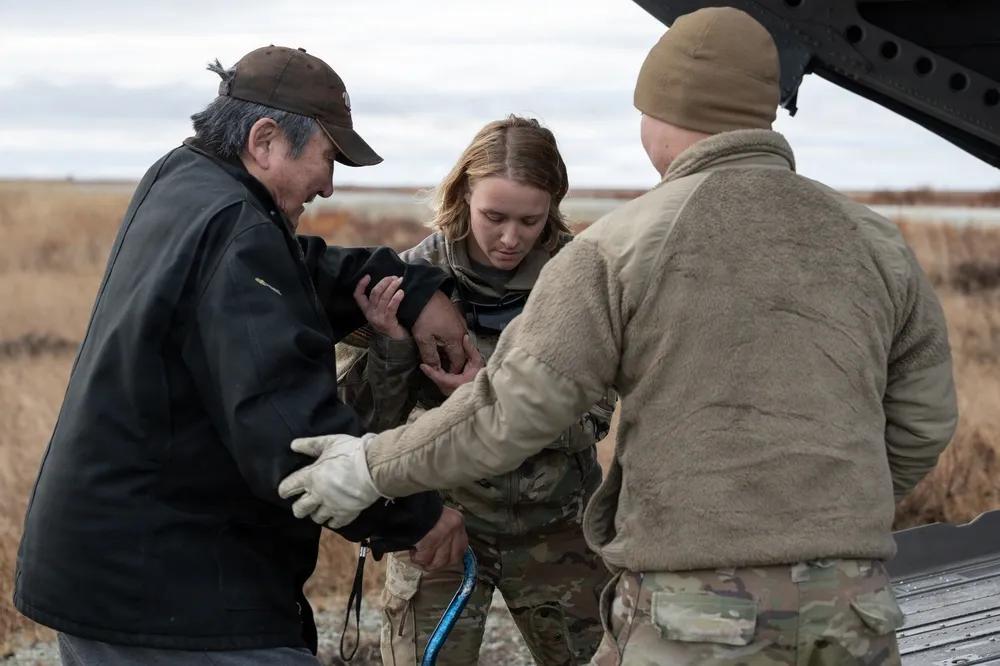 一场洪水让阿拉斯加原住民失去了一切。 阿拉斯加陆军国民警卫队的中士亨特·洛伦茨(Hunter Lorenz),一名CH-47支奴干直升机机组长,隶属于第2-211通用支援航空营B连1分队,于2025年10月16日在撤离行动中与阿拉斯加克威吉灵诺克的居民分享糖果。阿拉斯加陆军国民警卫队直升机机组与第207航空部队指挥部共同将受灾严重的阿拉斯加社区居民转运到贝塞尔,然后通过阿拉斯加国民警卫队C-17运输至埃尔门多夫-理查森联合基地。在上周末袭击阿拉斯加西海岸的毁灭性台风哈龙(Typhoon Halong)之后,阿拉斯加州国土安全与应急管理局继续与阿拉斯加有组织民兵和美国海岸警卫队合作,开展持续的恢复行动。