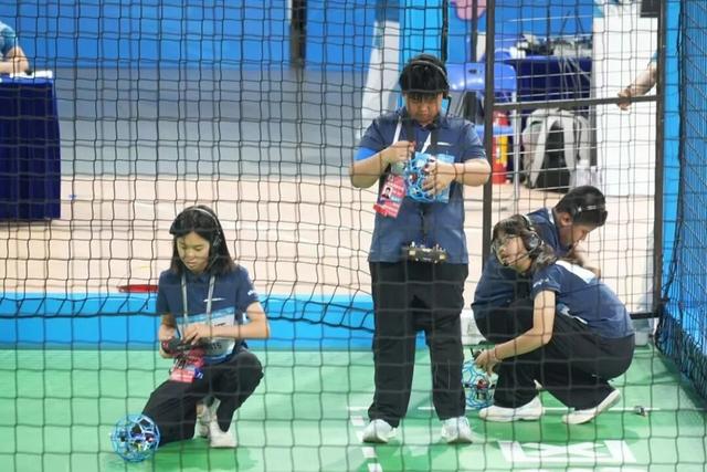 当天晚些时候进行了无人机足球(F9A-B)决赛,作为首次纳入全运会的新兴科技体育项目,无人机足球比赛分为小组赛与淘汰赛两个阶段,采用五人制红蓝对抗规则,选手需操控球形无人机突破防线,射门得分。