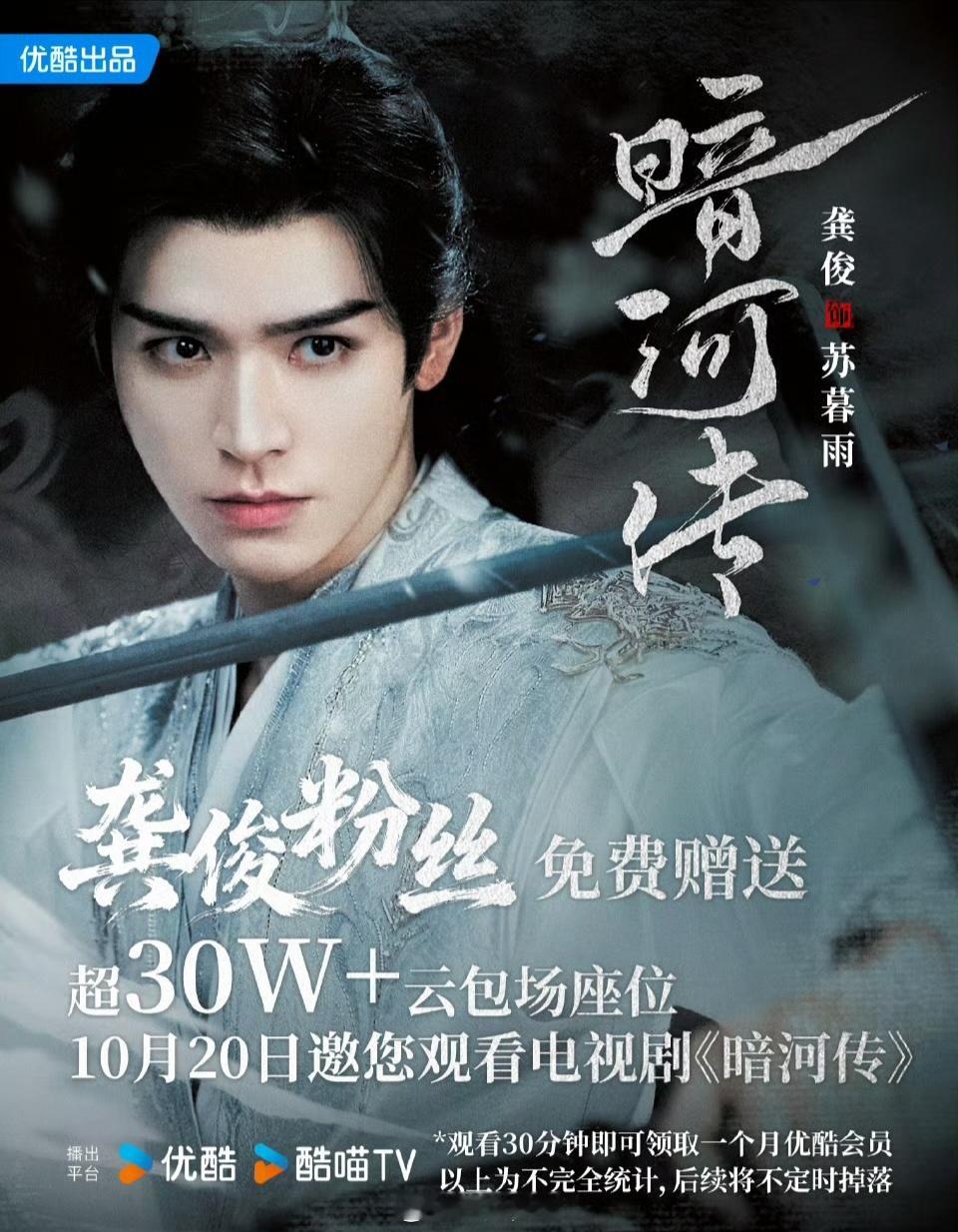 龚俊粉丝壕气十足,真有实力呀,云包场超30w+邀请大家来优酷看《暗河传》,俊味仙牛掰暗河传 龚俊苏暮雨龚俊 暗河传