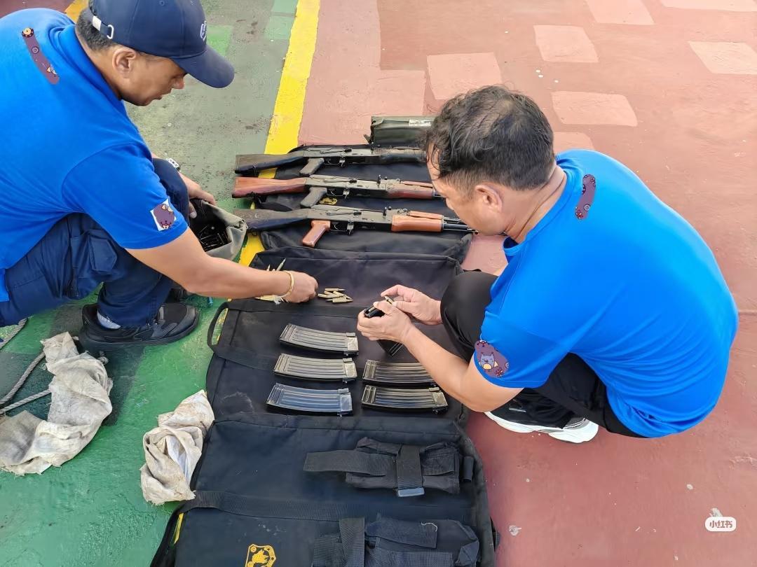国际航线货船过亚丁湾海盗活跃区,用上真枪了,不是56式喔: