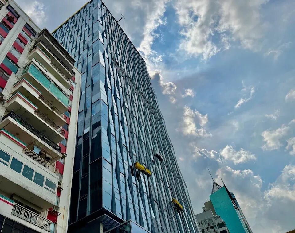 港岛壹号中心,楼高31层,包括24层办公楼层、2层顶楼餐厅、3层购物餐饮平台,以及3层地下停车场,提供143个汽车泊位;每层办公空间楼底高2.9米,楼面约2万方呎。