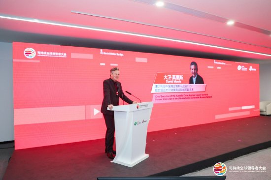 澳大利亚中国工商业委员会(塔斯马尼亚分会)CEO,联合国亚太可持续商业网络前副主席大卫·莫里斯(DavidMorris)出席2025可持续全球领导者大会,并在《可持续商业的未来——趋势、挑战与机遇》议题论坛发表演讲。