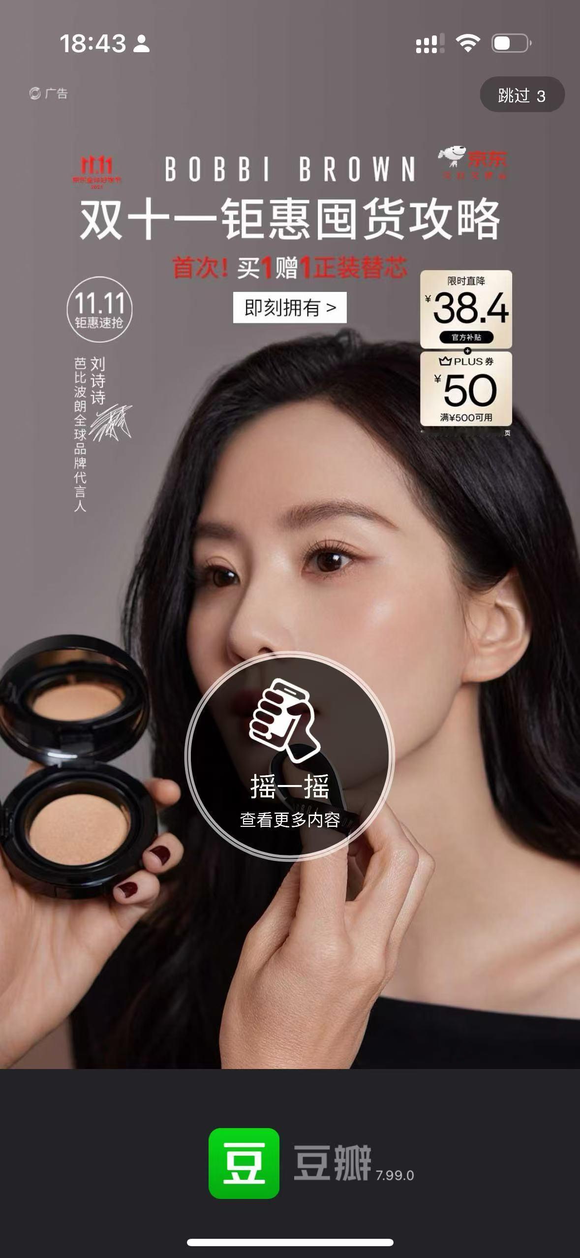 在多个软件开屏上遇见刘诗诗芭比波朗全球品牌代言人 刘诗诗不仅是地广富人,线上也包
