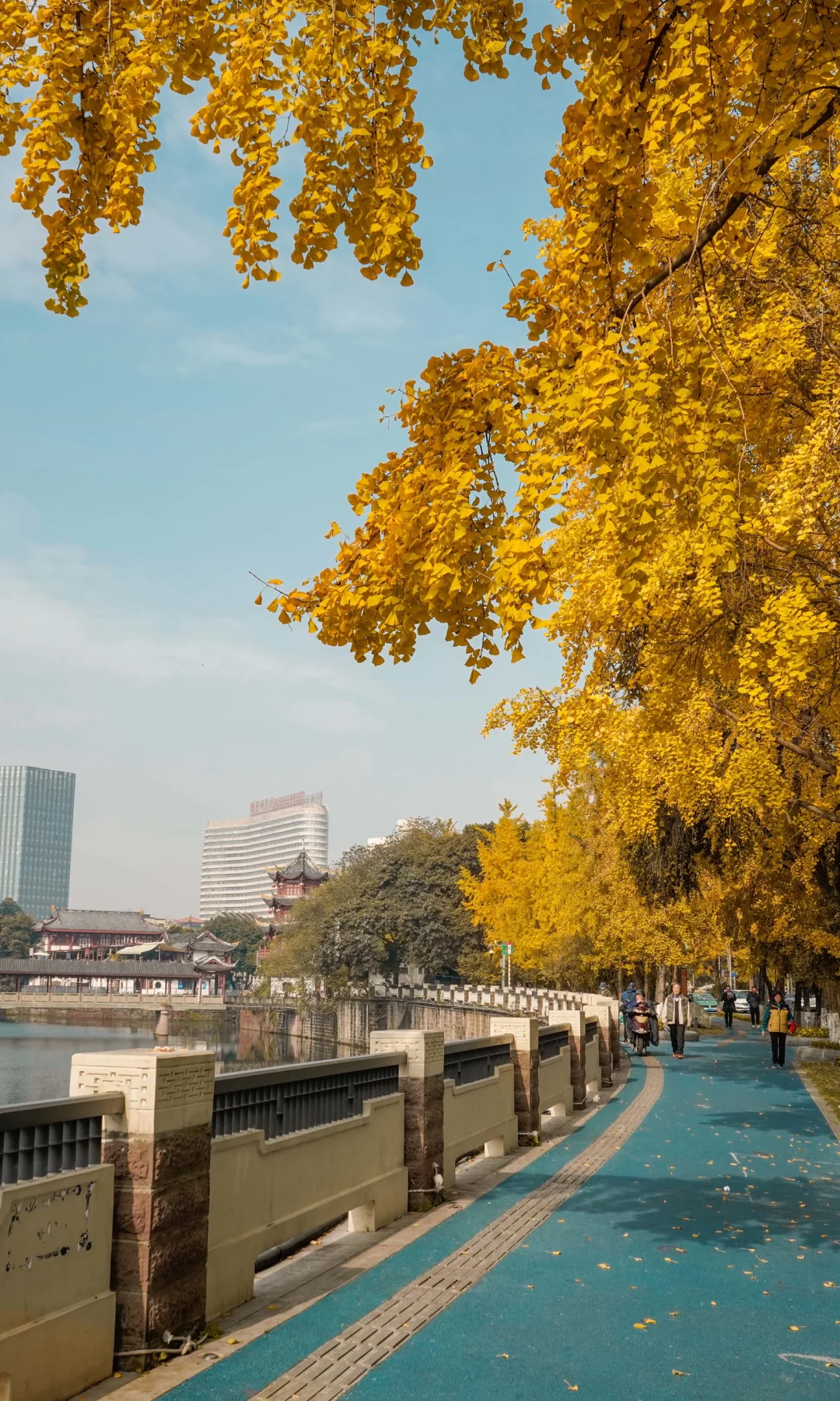 街道两边种满了大颗银杏,两侧都是一些居民房,道路的尽头处有两处白色石拱桥,拍照很好看,也是适合在成都citywalk的街道之一