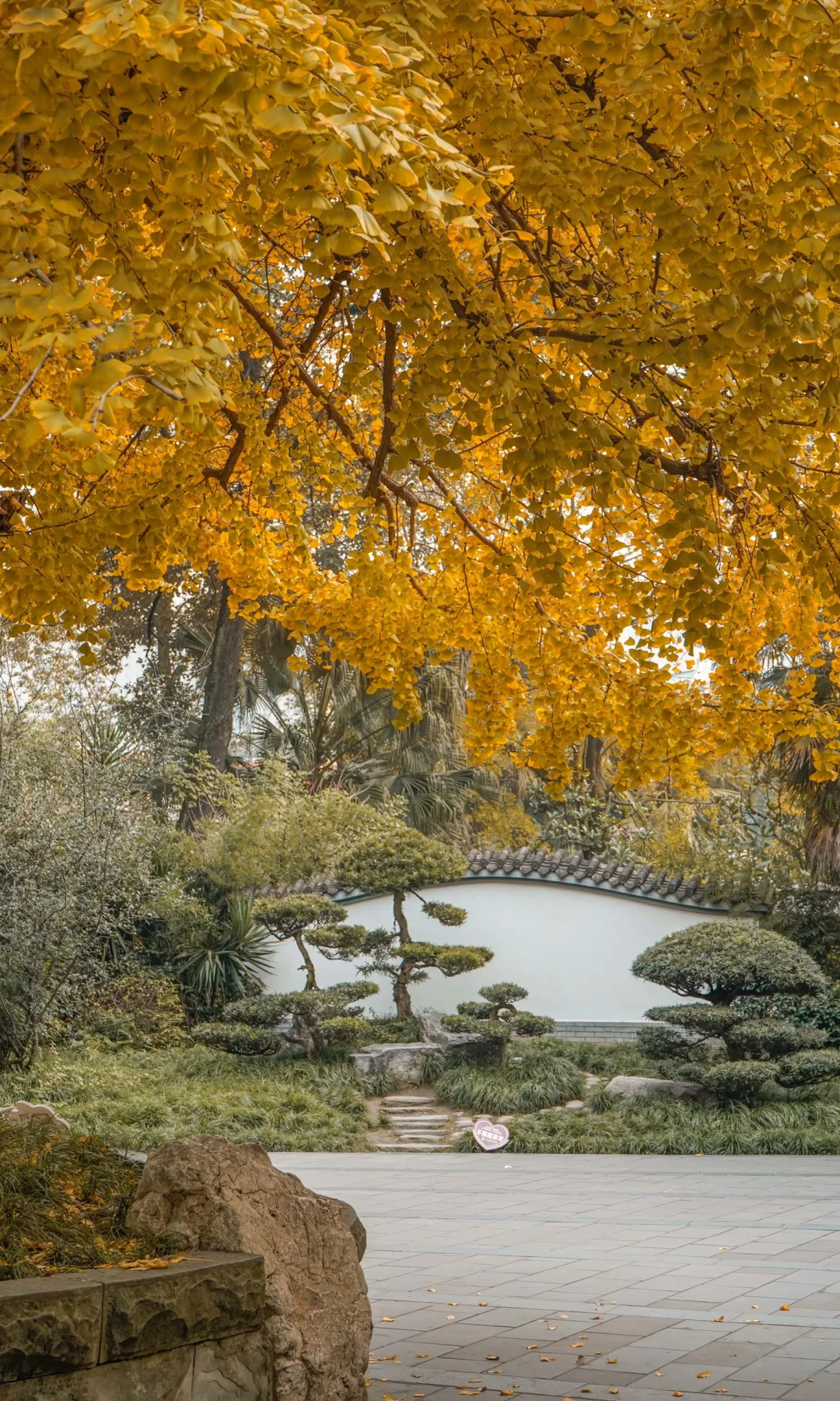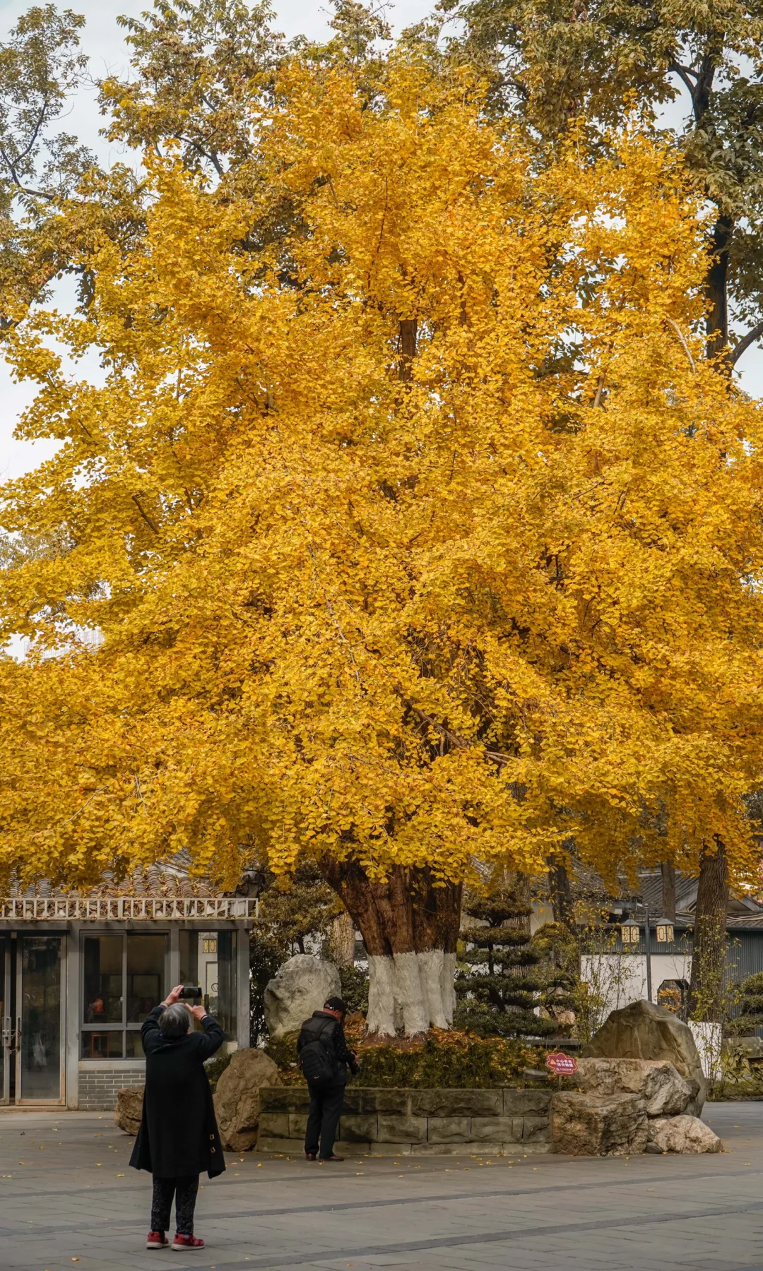 只有老成都人才懂百花潭公园的含金量,那颗千年银杏,当叶片全变黄时,蔚然壮观。百花潭公园里的百花潭画廊处的银杏也很好看