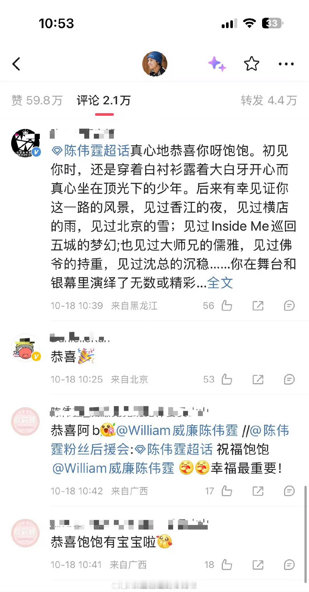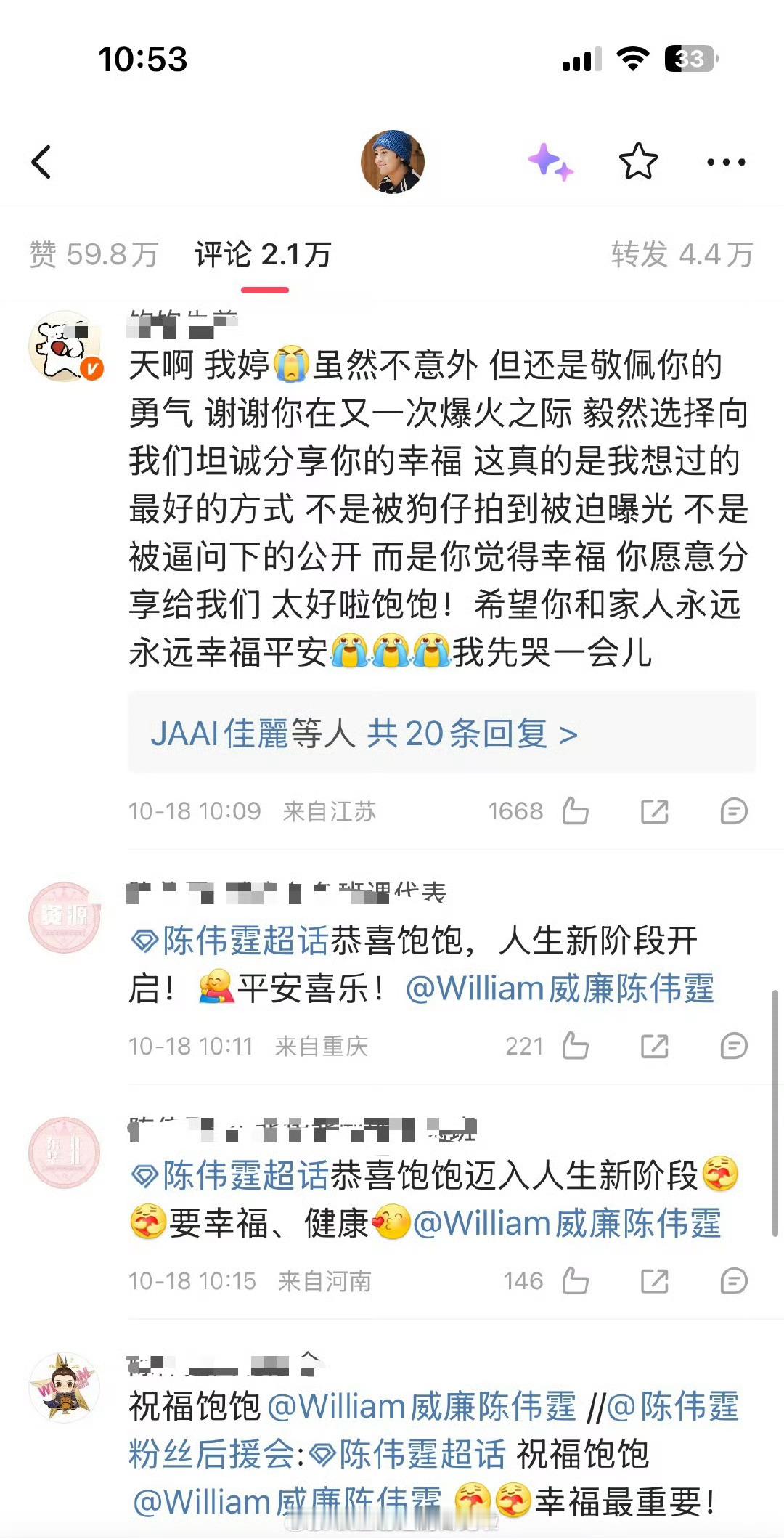 没有cp粉舞,陈伟霆评论区也是粉丝高兴在祝福,事业回春家庭美满,接好命哥的好命[拜托][拜托][拜托]