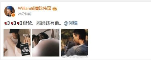 型男陳偉霆今日(18日)投入震撼彈,在社交網宣布做老竇,還要一索得男,絕對毫無預警!他晒出抱B照、何穗超聲波照和大肚照,他寫道:「📢📢📢爸爸、媽媽還有他。