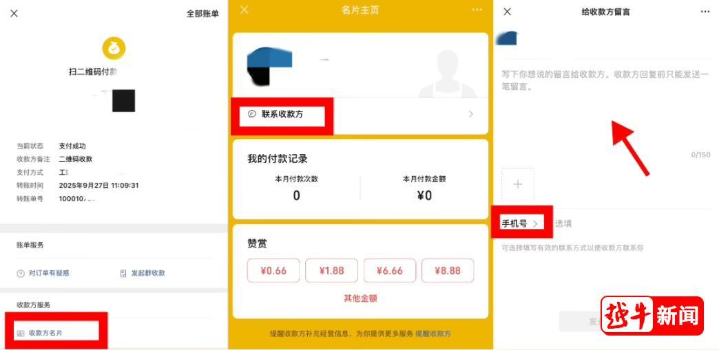 对于商家/司机(收款方):在微信中打开该笔交易的“账单详情”页,点击“联系收款方”,即可通过平台向付款方留言并留下自己的电话。对方会在微信支付服务通知中收到提醒。