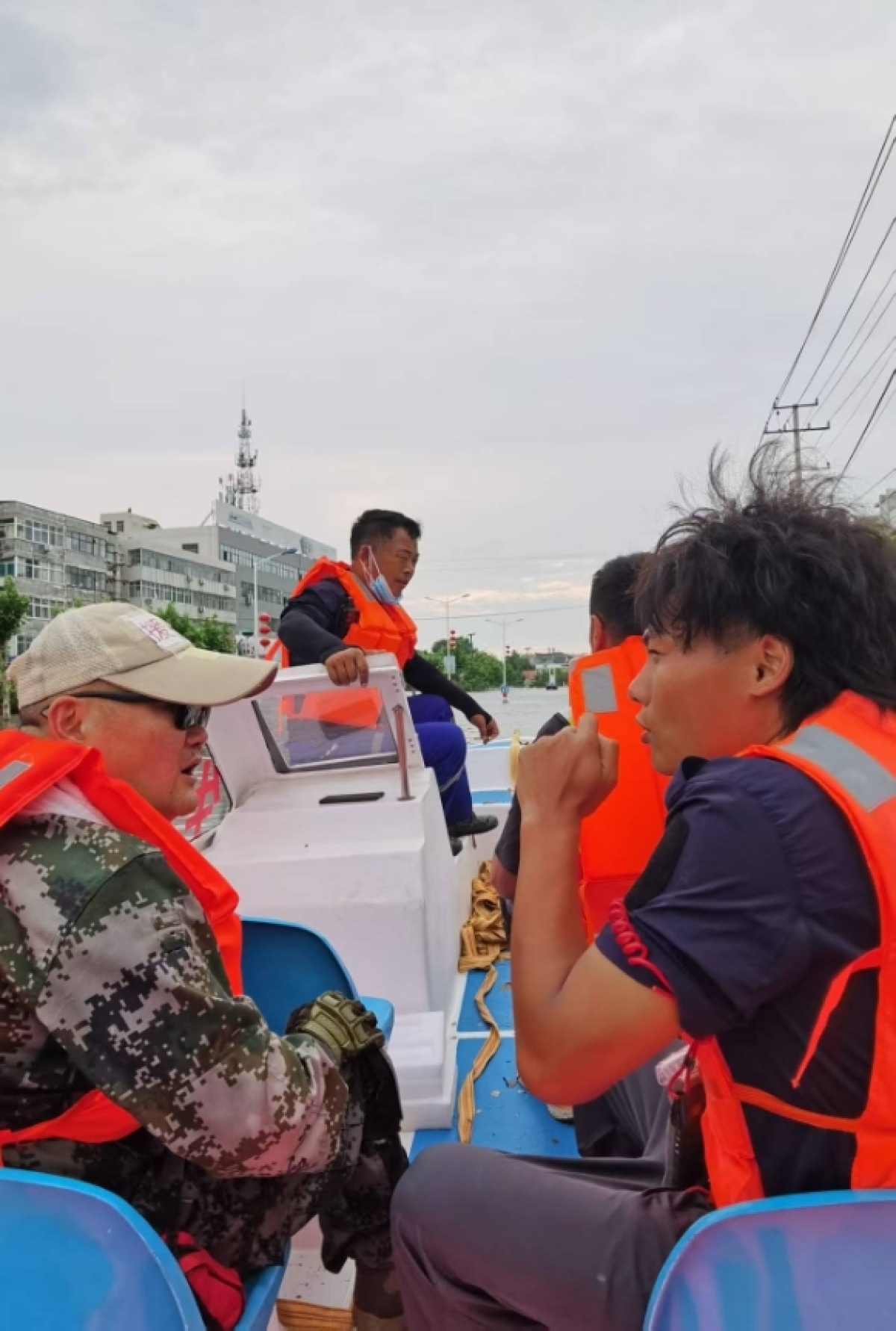 抵达京广隧道救援点时,洪水已淹到成年男子胸口,受困群众在浑浊的水里挣扎,汽车顶、路灯杆上都爬满了人。王普祥迅速穿好救生衣,和父亲形成默契配合:父亲掌舵冲锋舟避开漂浮物,他站在船头观察水流,大声安抚惊慌的群众。遇到几名因语言不通而手足无措的外国友人,他用流利英语讲解撤离要点,稳稳将他们护送到安全地带。