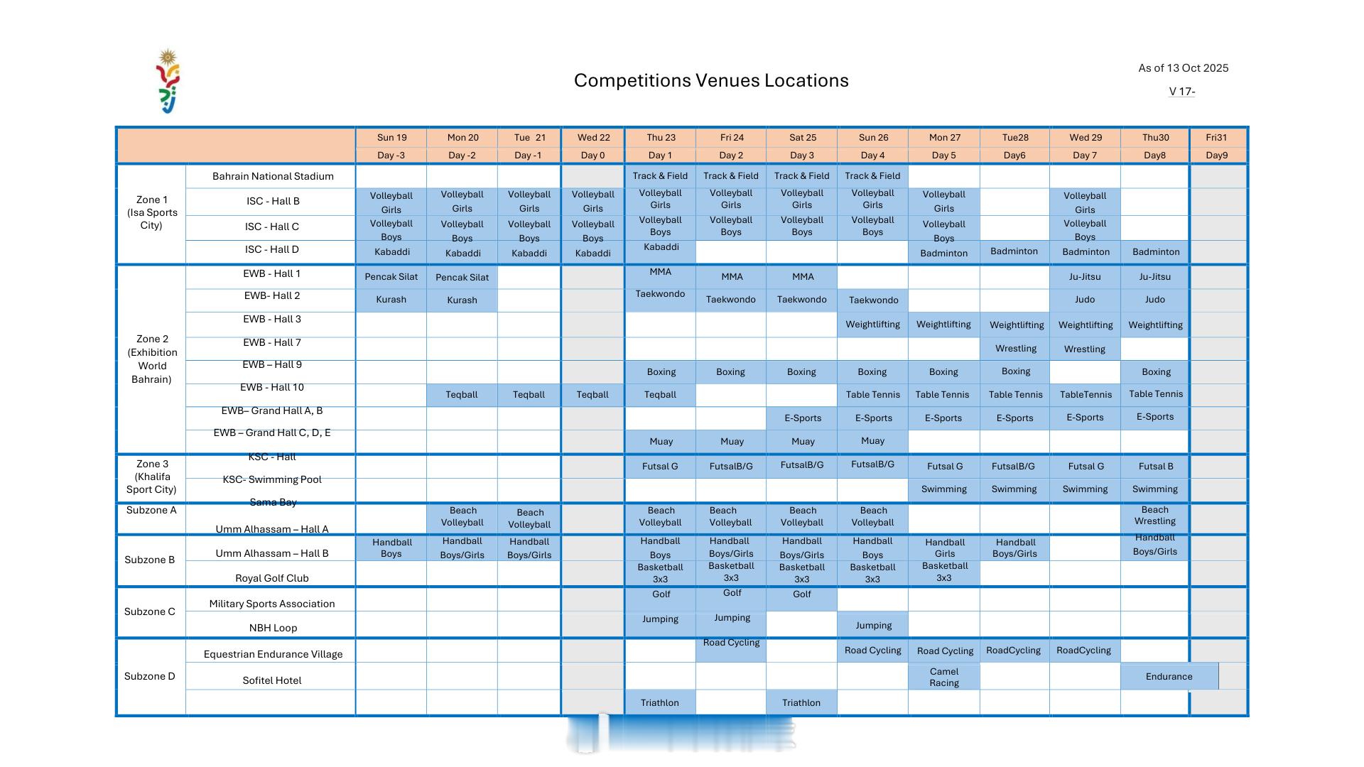 2025年第三届亚洲青年运动会10月22日在巴林开幕,男女室内排球比赛10月19