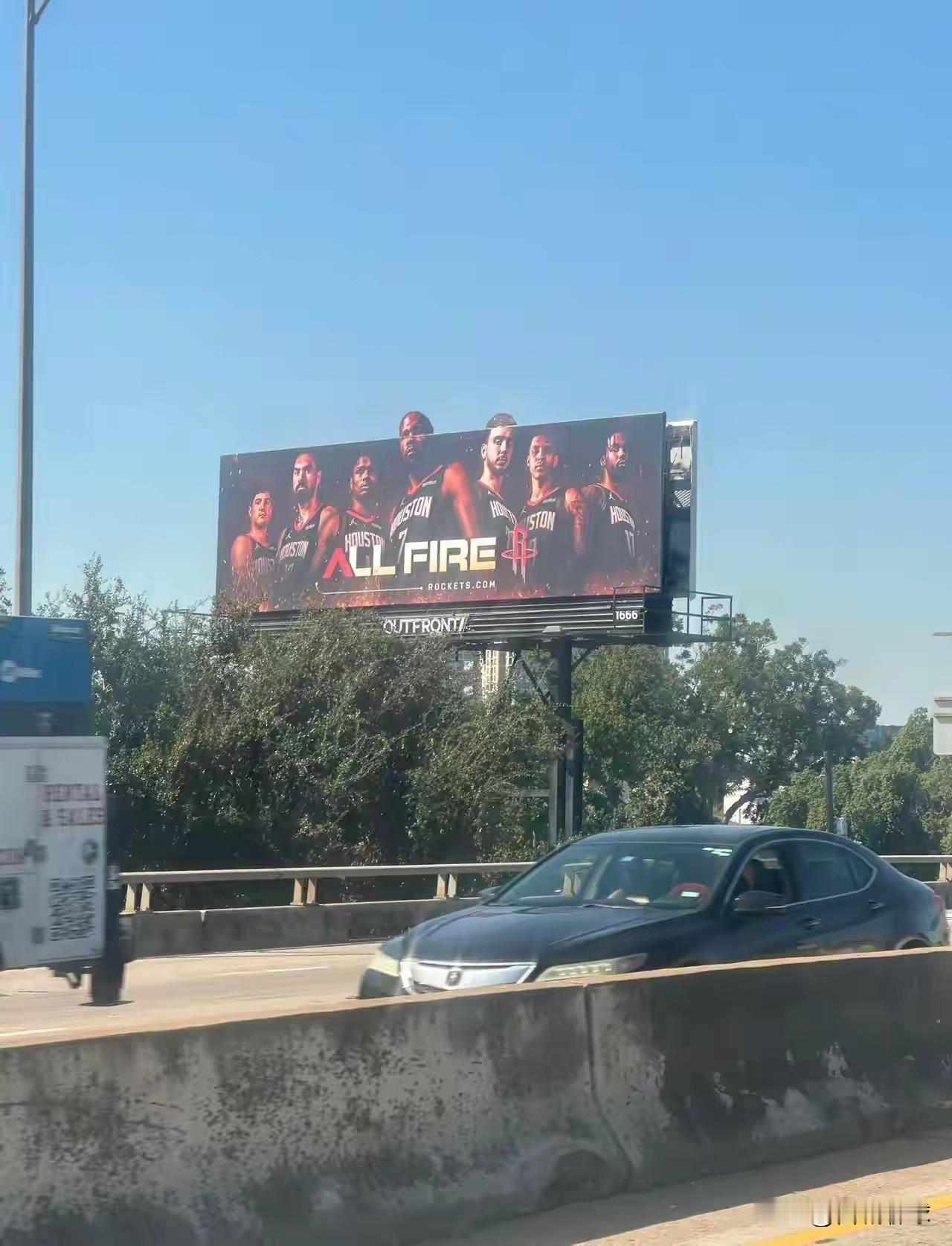 休斯顿火箭当地大马路上的宣传海报[比心]