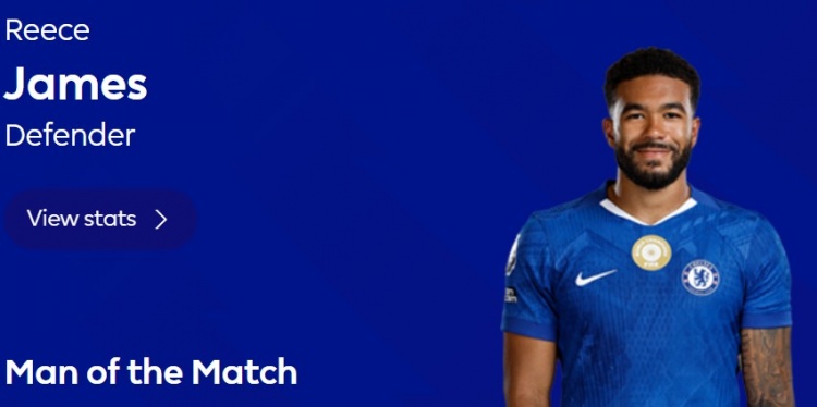 传射建功,英超官方:里斯-詹姆斯当选切尔西3-0森林全场最佳球员