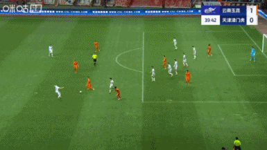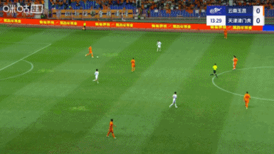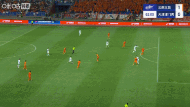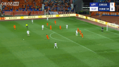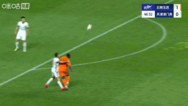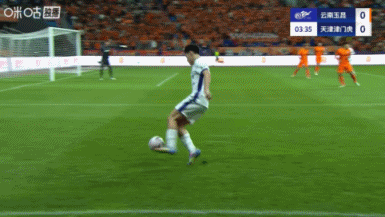 第73分钟,王秋明禁区外右脚来一脚低射,皮球偏出了球门左侧↓
