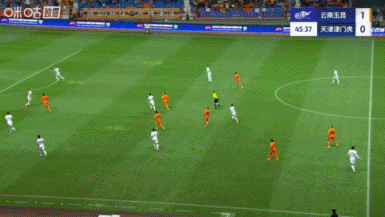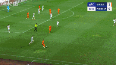 第90分钟,内内禁区内左侧得球,左脚送出传中,皮球被门将扑了一下击中了立柱↓