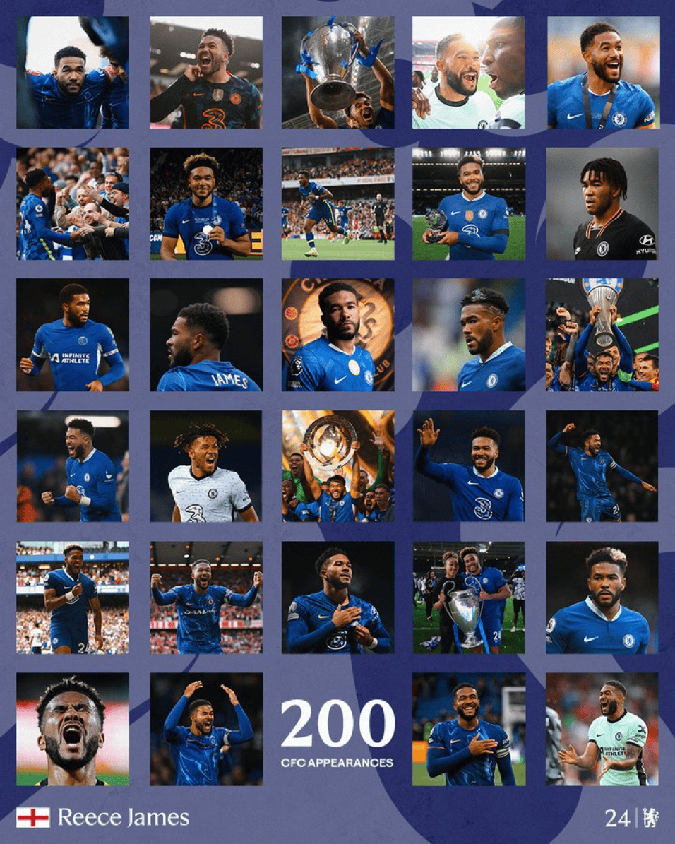 赛后,切尔西官方发布了纪念海报:“他在200场里程碑时取得进球,里斯-詹姆斯是纯粹的蓝血人。”
