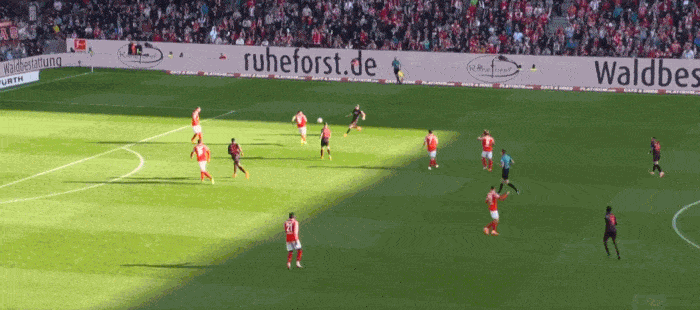 格里马尔多在比赛中梅开二度,科法内、泰里耶也收获了进球。美因茨比赛中在2球落后的情况下三次将分差迫近到1球,进球的球员分别是李在城、阿米里、席布,但他们始终没能追平比分。
