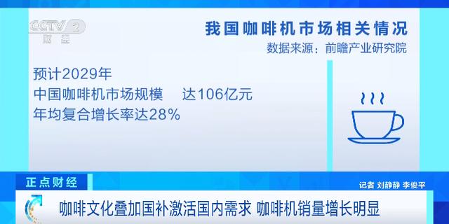数据显示,2025年1至8月,国内咖啡机销量为168.3万台,同比增长75.6%。到2029年,中国咖啡机市场规模有望达到106亿元,年均复合增长率预计高达28%。