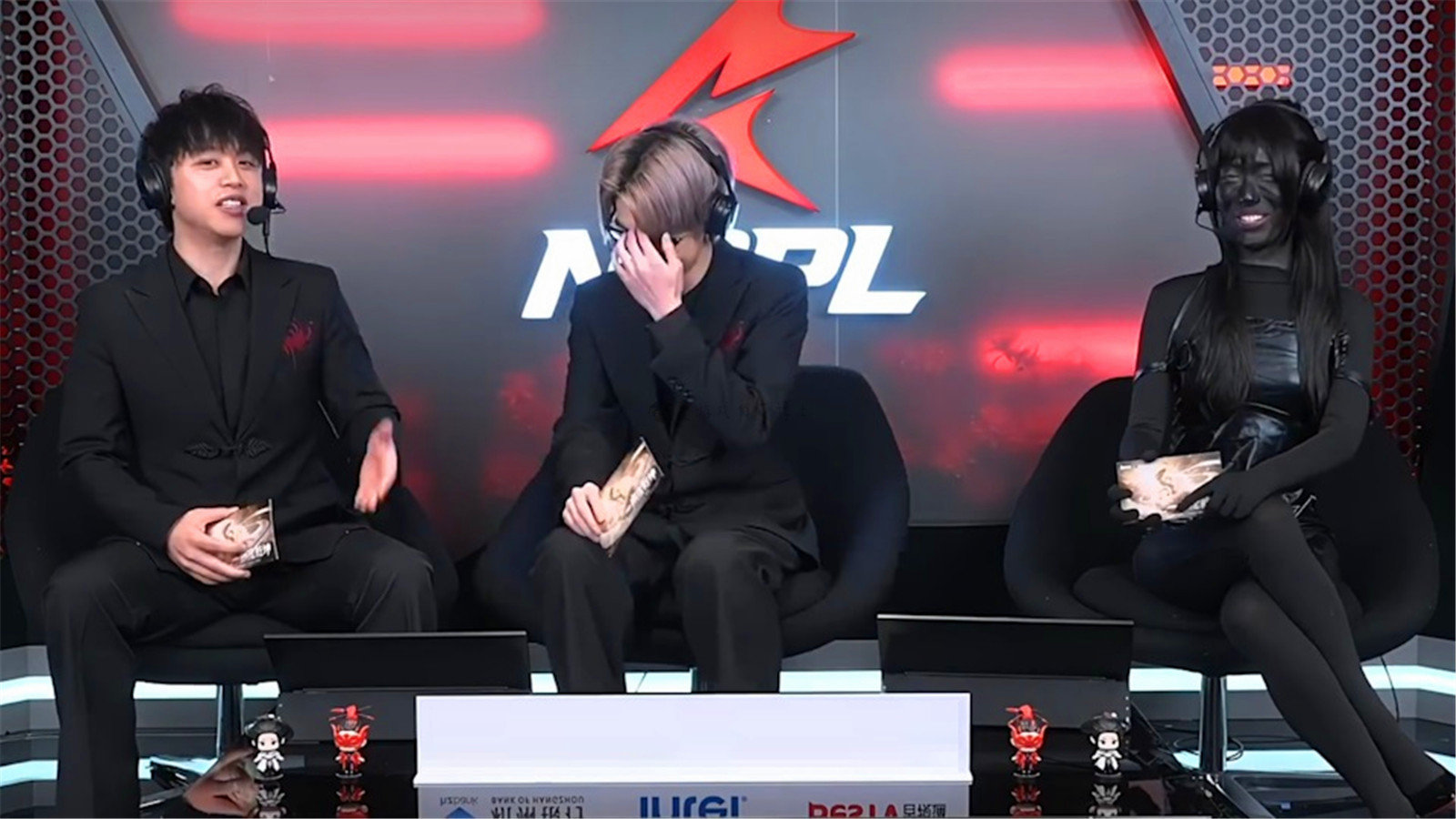 在玩家社群里,一段《永劫无间》中国NBPL电竞赛事相关的影片在疯狂传播,我们看到女解说换上了全黑紧身衣、全黑的丝袜、全黑的手套,甚至连脸部都涂成了黑色,以如此夸张的造型登场。整个解说过程中,大家看到两位男性解说员旁边坐着一个黑黢黢的人,只有后者在说话的时候,才能看到一抹白亮,异常搞笑!