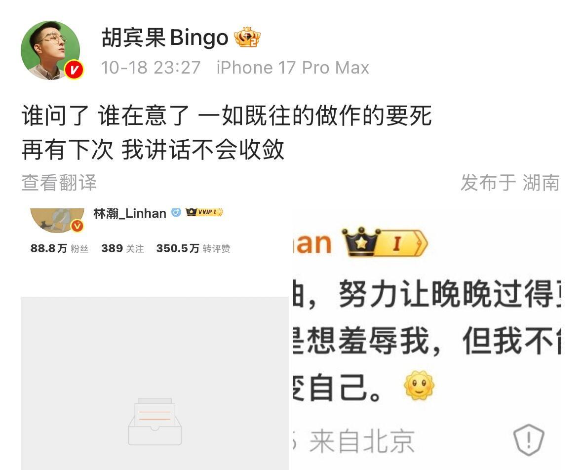 胡宾果大战晚晚老公林瀚超模老了怎么办的回旋镖还是来了他们俩是有过节吗?