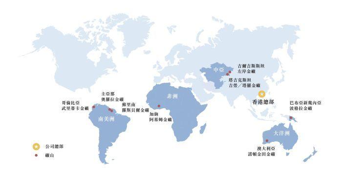 根据上市招股书内容,紫金黄金国际旗下8座金矿遍布中亚、大洋洲、南美洲、非洲等多个矿产丰富的地区。