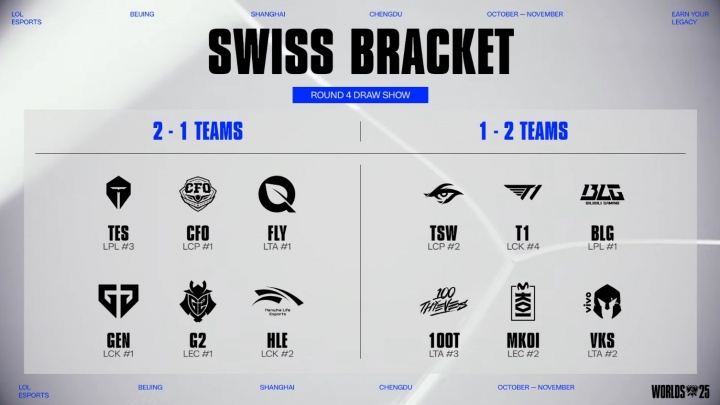 直播吧10月19日讯S15瑞士轮第四轮抽签仪式正在进行中!第四轮抽签将不会抽到交过手的队伍!