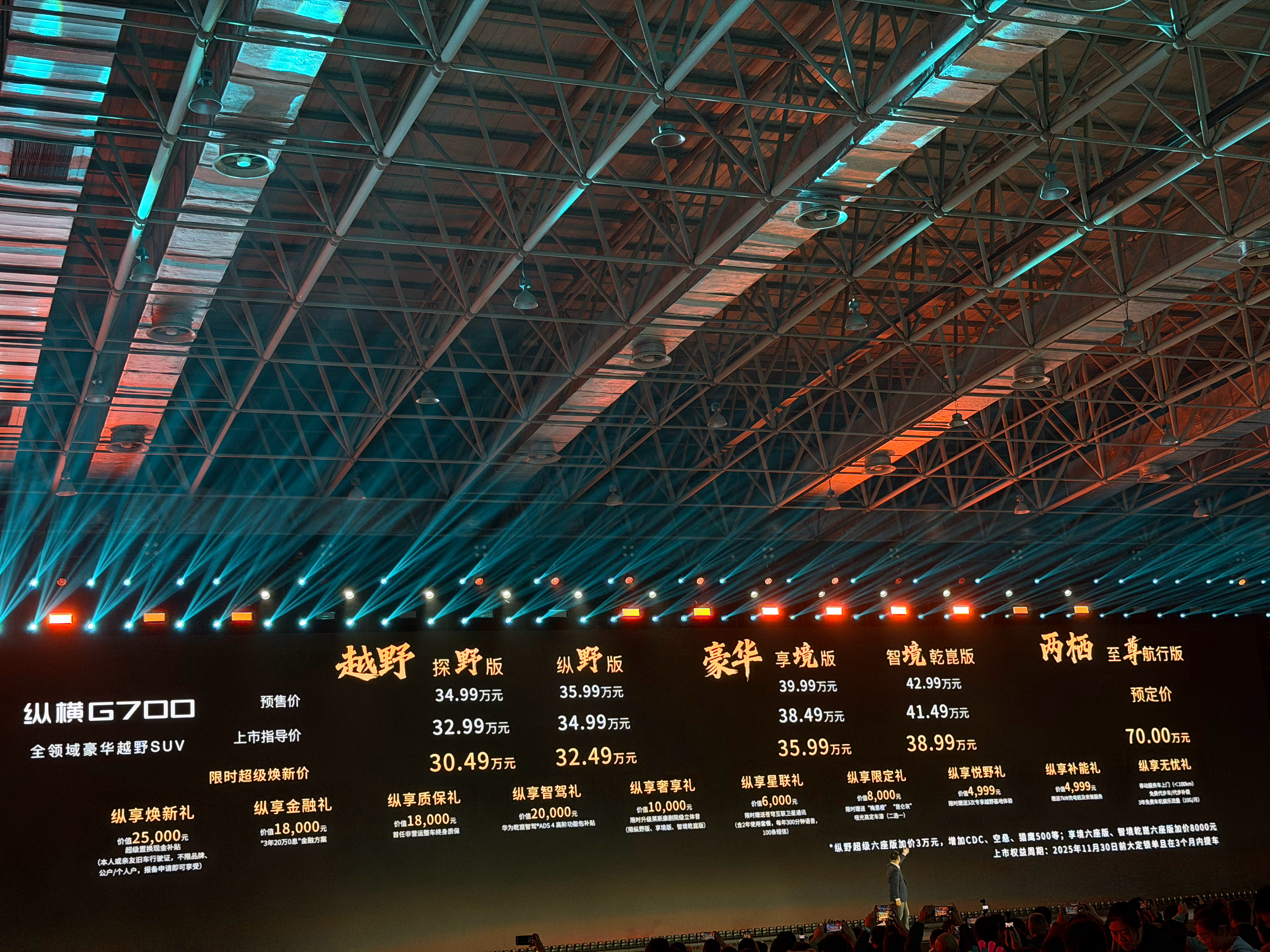 开纵横G700越野从从容容游刃有余如果你正在找一台能带你去所有“未知”,还得奢华到骨子里的硬核越野SUV,那纵横G700绝对是你不能错过的答案!这车动力猛到离谱,最大904匹马力,V8级推背感,越野、涉水、爬坡样样不虚,970mm最大涉水深度,翻山越岭还是横渡江河都不在话下。座舱就像移动豪华客厅,六座独立云憩座椅、头层皮+八点按摩、空气悬架、顶级莱斯康剧院音响,舒舒服服像头等舱。