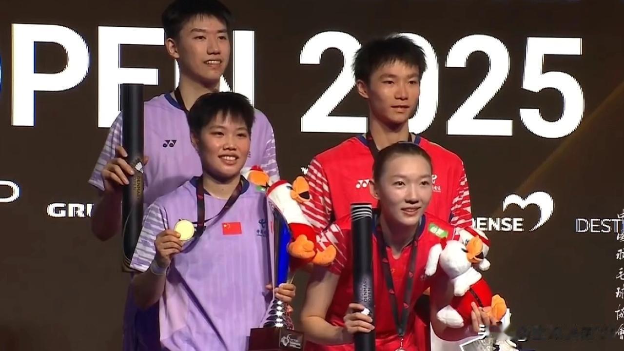决赛战报 2025年丹麦羽毛球公开赛落下帷幕,冠亚军分布如下:国羽取得1金3银,韩国2金1银,印尼1金1银,日本1金。 1、女双,李绍希/白何娜在4连败后,以15-21,21-14,21-16的比分逆转金慧贞/孔熙容组合,夺得本赛季首个冠军! 2、混双,冯彦哲/黄东萍21-13,21-9轻松战胜队友蒋振邦/魏雅欣,复仇在北极公开赛的失利,将交手记录改写为13-3。 3、女单,王祉怡5-21,22-24负于世界第一的安洗莹。 4、男双,保木卓朗/小林优吾21-18,15-21,21-19战胜印尼的阿尔菲安/菲克里,取得首次交手的胜利。 5、男单,石宇奇在21-13,拿下首局后,被乔纳坦21-15,21-15逆转。 2025年丹麦羽毛球公开赛