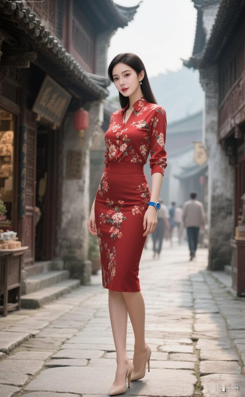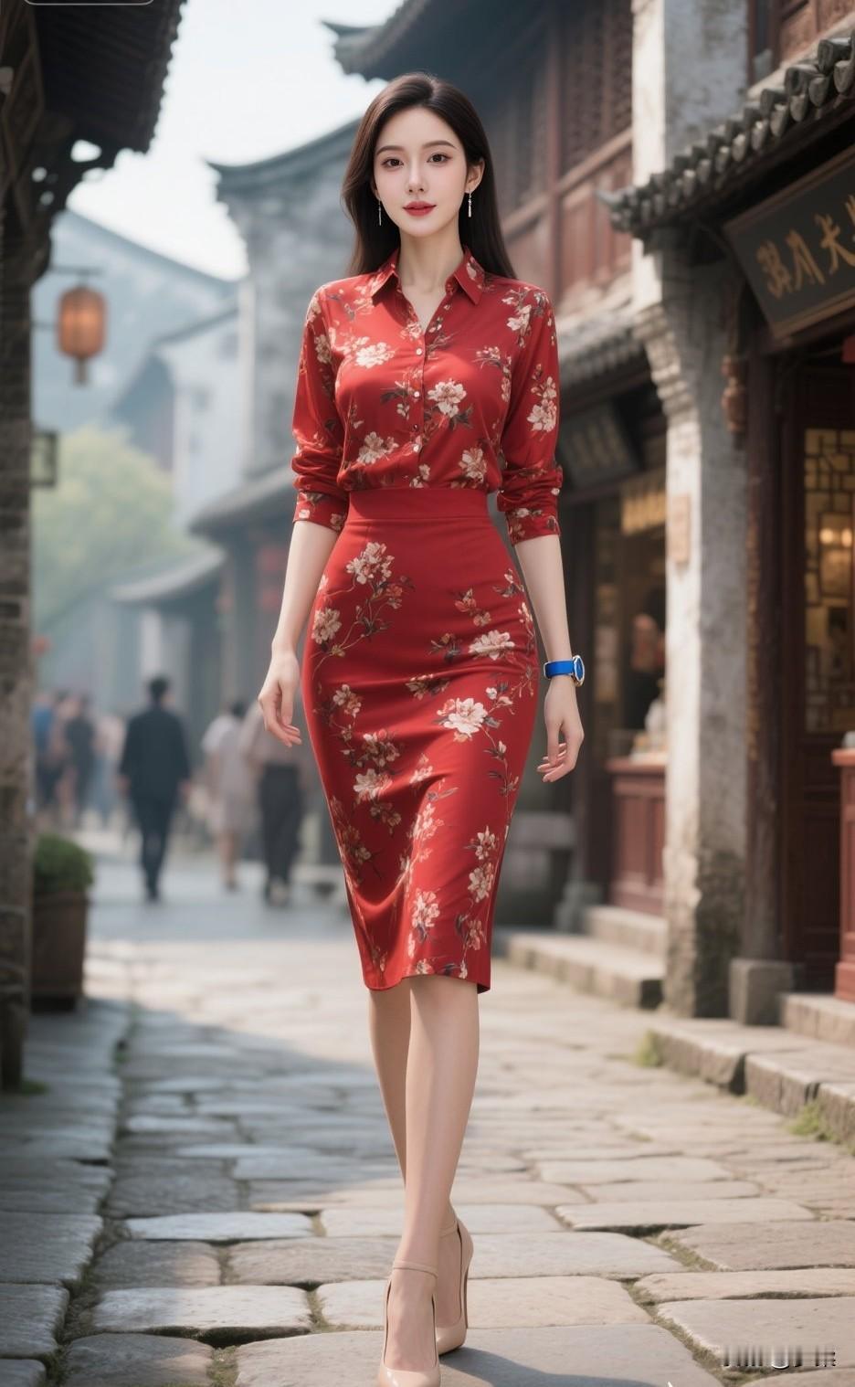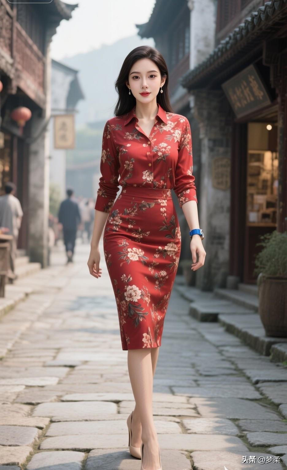 复古风长裙,优雅气质,漫步古街,韵味十足复古裙韵 复古新中式长裙