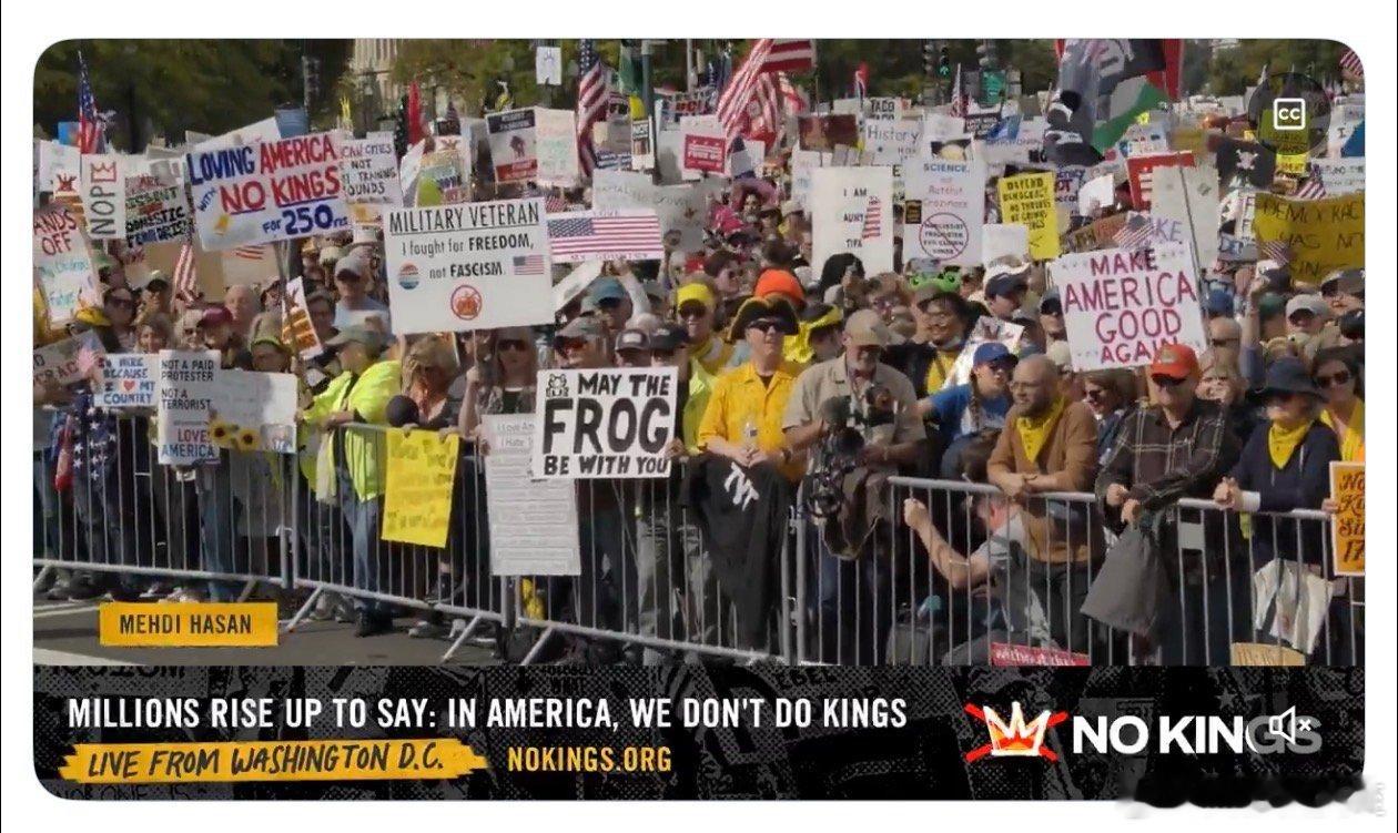 10月18日的No Kings抗议活动,共2600多场、400-600万人参加
