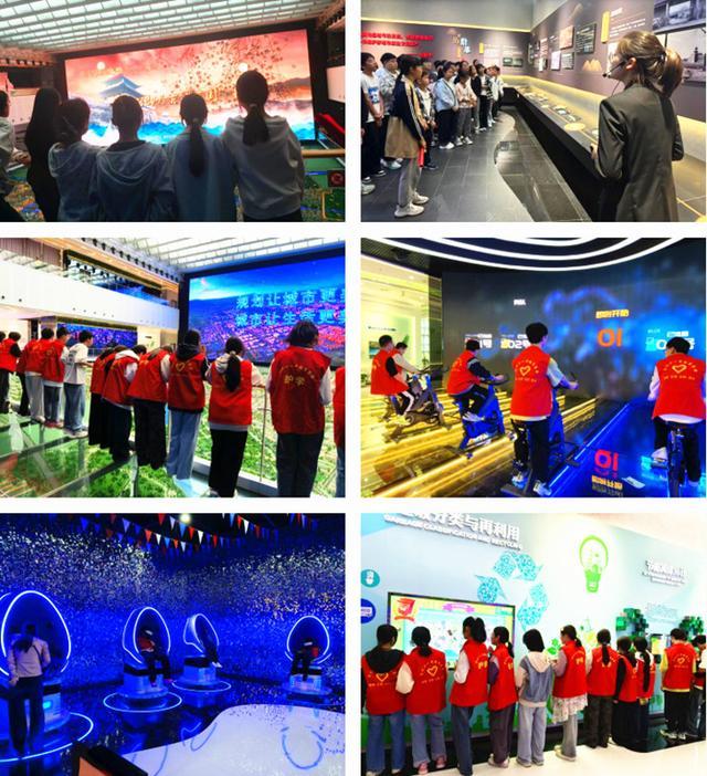 但最打动同学们的,并非仅仅是这宏大的规模,而是规划中处处流露出的“以人为本”的细节。规划馆没有只展示冷冰冰的建筑和道路,而是用大量的篇幅描绘了未来市民的生活场景:绿树成荫的公园里老人孩子在休憩玩耍,便捷的公共交通连接着城市的各个角落,充满活力的商业街区汇聚着人气与烟火气,同学们还体验动感单车,环游世界360°,赛道英雄等活动,这让同学们深切感受到,城市规划的终极目标,不是为了追求视觉上的壮观,而是为了创造更美好、更宜居的生活。