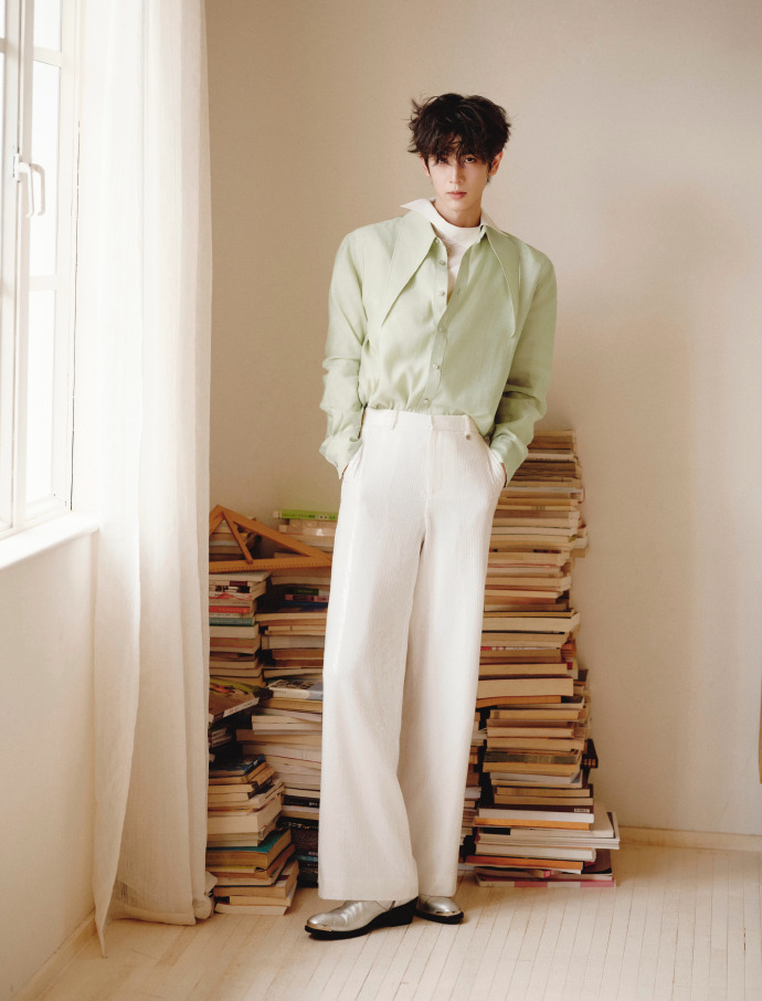 张凌赫薄荷绿衬衫 张凌赫绿色衬衫雀斑妆张凌赫小王子look张凌赫薄荷绿衬