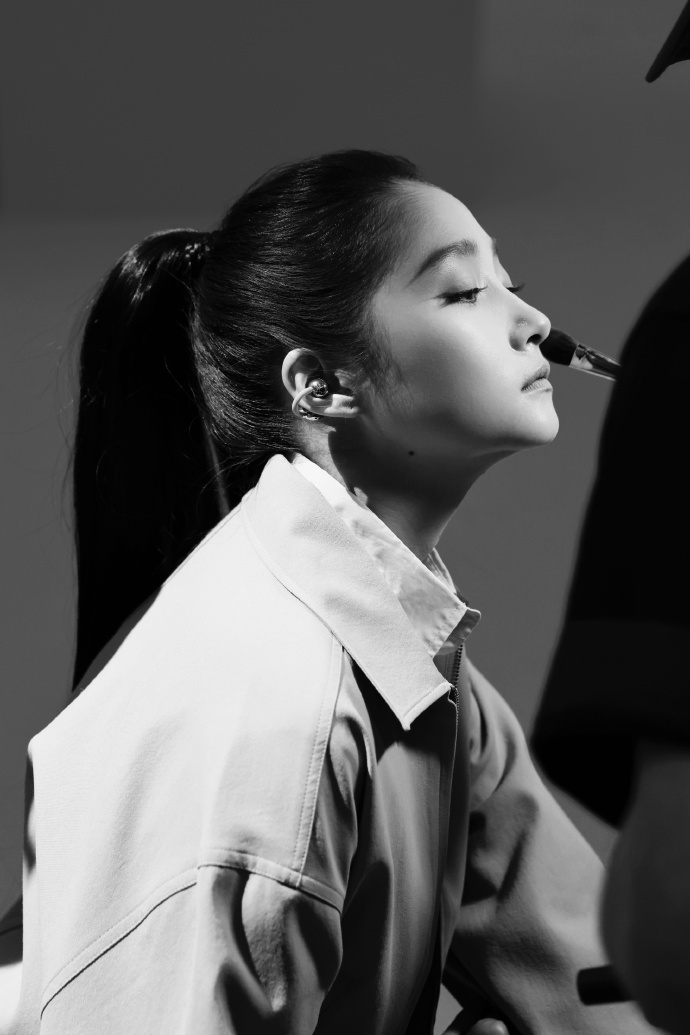 关晓彤高马尾侧拍花絮 关晓彤高马尾侧拍花絮,牛仔套装、风衣黑西装,每套造