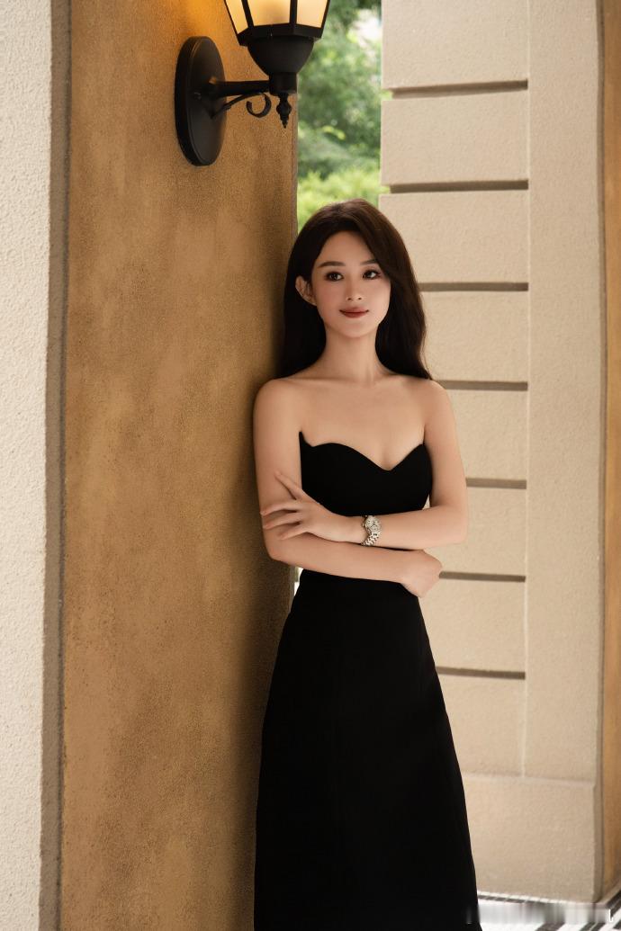 赵丽颖邂逅优雅经典停驻,赵丽颖温柔黑裙,是周一营业的丽颖来啦,今日份的抹胸黑裙造型也太经典温柔感了吧,谁能不被美到呢~